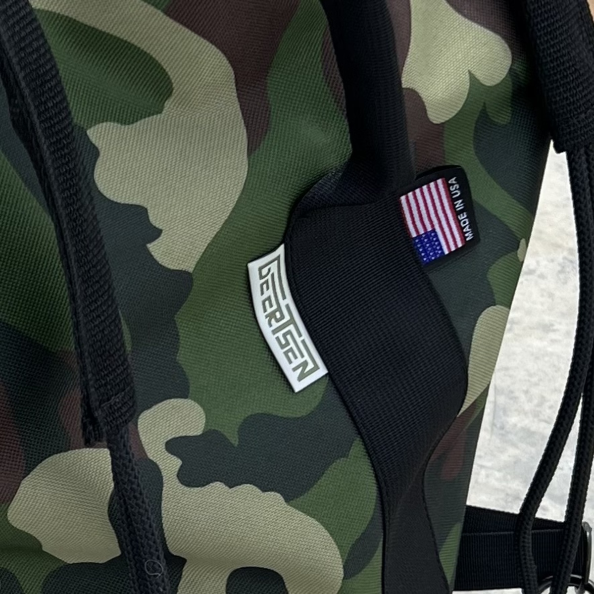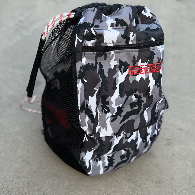 This heavy duty double cinch duffel is a perfect size if you're serious about taking what you need to the skatepark. The extra heavy duty camo version is made with 1000d Cordura. Reinforced with nylon thread. The double cinch clips to the bottom and allows for easier backpack style wearing, with body rope protector for more comfort.Made with big eyed cargo mesh for top to bottom air flow. Featuring a pleated front pocket, ideal for storing your phone, wallet, keys and much more. Reinforced with strong webbing along the seams. 24 inch opening for easy access and 24 inch deep for lots of storage