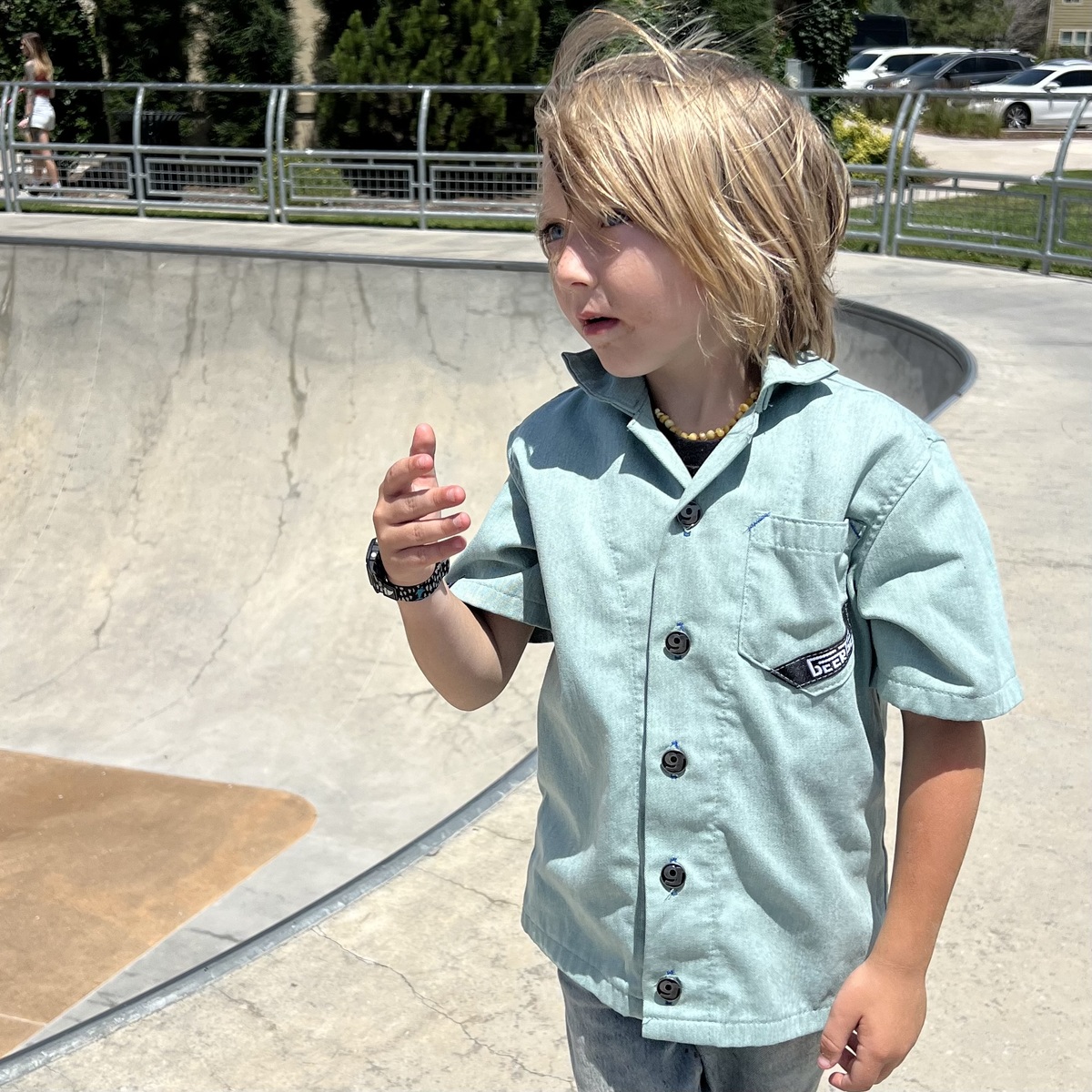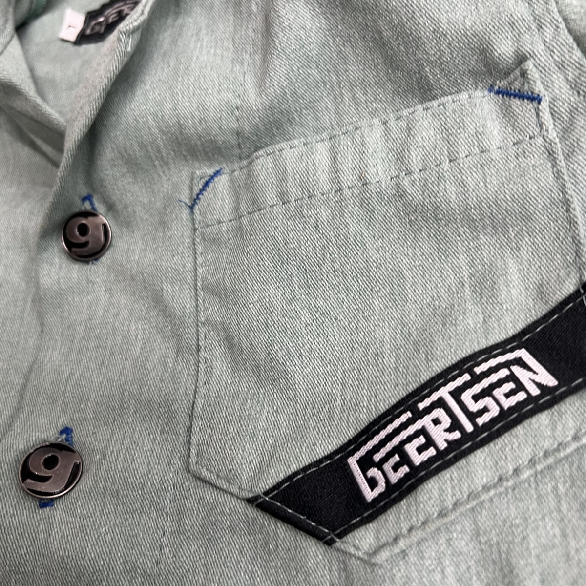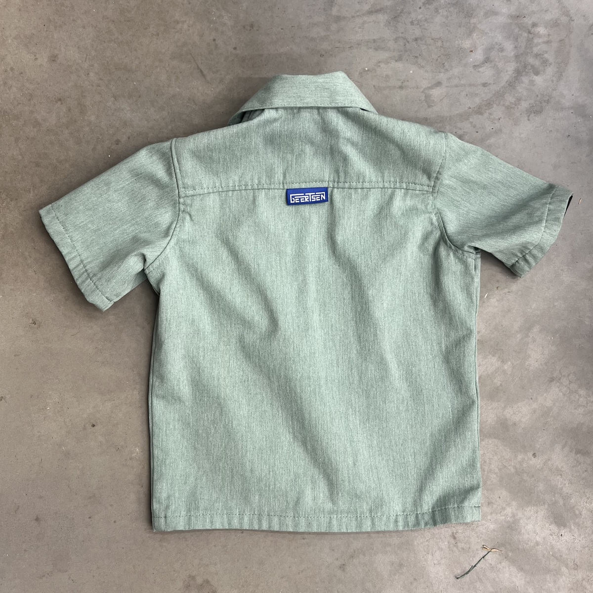 This durable button-up Pool Technician Shirt is made from a tough 100% cotton (Sea Foam Green) or 65/35 poly-cotton blend (Charcoal, Ceil Blue) that’s pre-shrunk and built to move. Features include an open step collar, our Iconic Geertsen Buttons with contrast buttonhole stitching, and reinforced pocket bar tacks.While you work on your latest tricks, this shirt will keep you sharp and feeling comfortable.