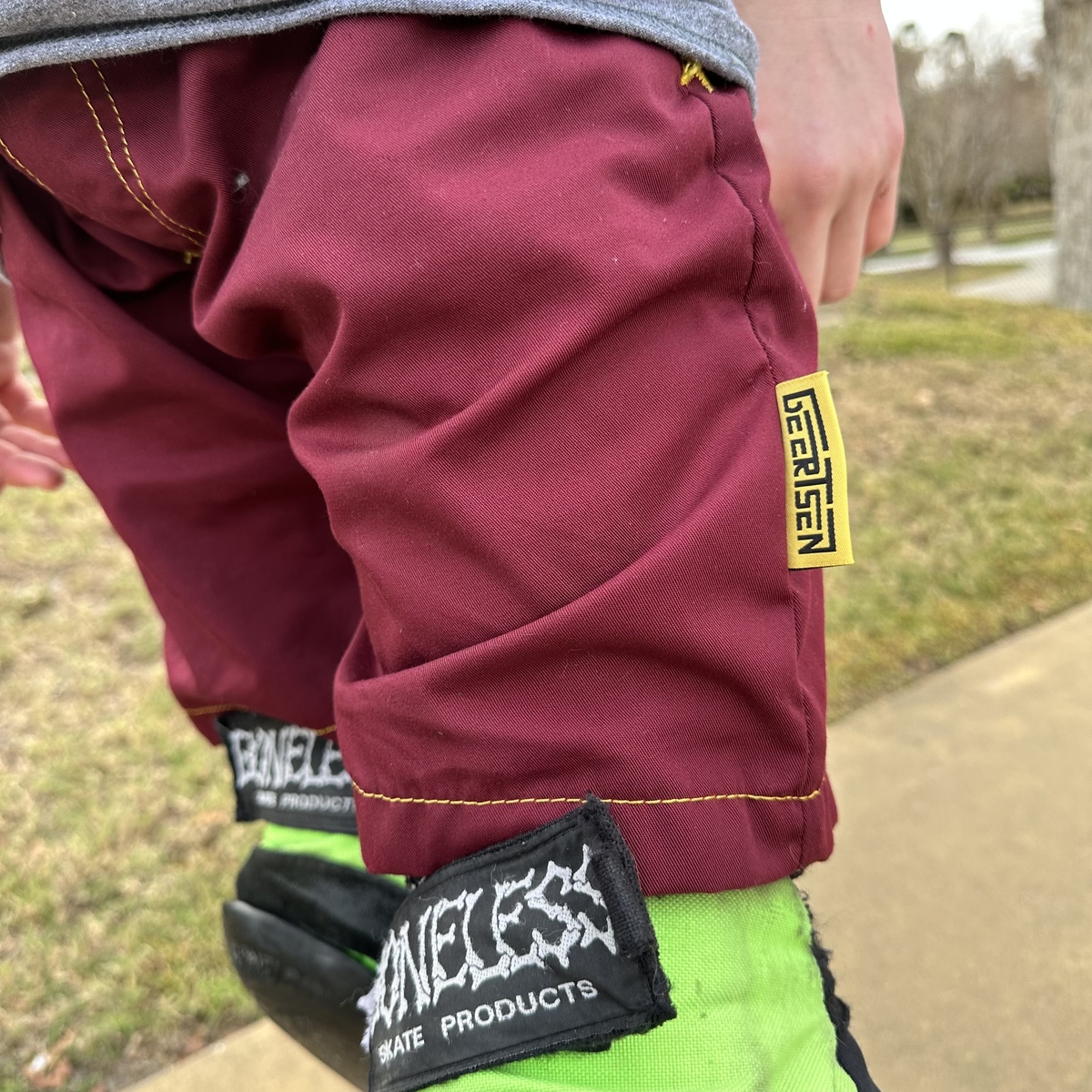 Youth 7 - 8 ounce Skate Shorts. Good fit with a perfect amount of stretch. The Outside length ranges from 16 to 17 inches. Our shorts are NOT mass produced. We give attention and care on each pair. Made in the USA by Skaters for Skaters.